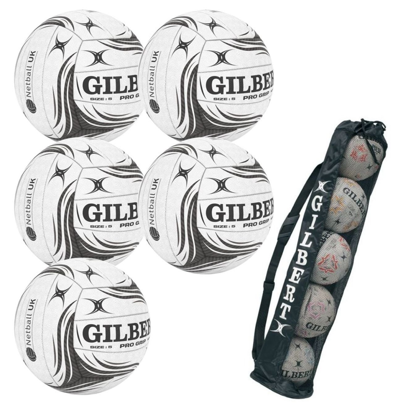 5 x Gilbert Pro Grip Netball Bundle Plus Gilbert Ball Tube