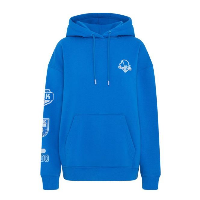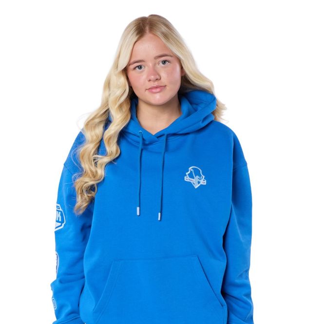 Designed specifically for netball lovers, this bold blue hoodie features on‑trend arm badge embroidery, sleek front detailing, and an eye‑catching 00 back print. The unique 3D line accents add a striking finish that sets this hoodie apart - ideal for training days, team events, or casual wear.