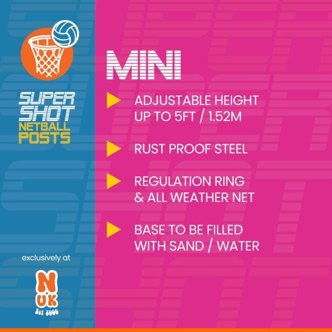 Start your netball journey with the NUK Super Shot Mini Netball Post – perfect for young players aged 4 and up.